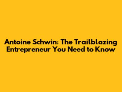 Antoine Schwin: The Trailblazing Entrepreneur You Need To Know