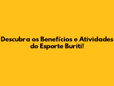 Descubra Os Benefícios E Atividades Do Esporte Buriti!