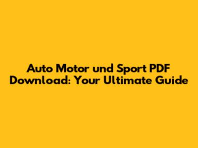 Download Auto Motor Und Sport PDF: Your Ultimate Guide