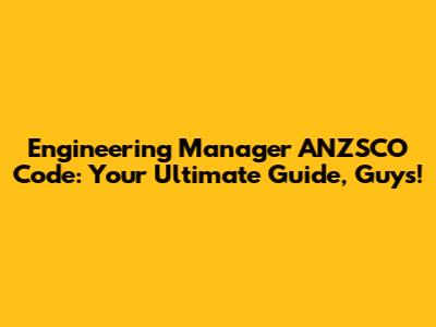 Hey everyone! Let's dive deep into the world of the Engineering Manager ANZSCO code. If you're an aspiring engineering manager, or perhaps an employer looking to understand the skill sets and qualifications required, you've landed in the right spot. We're going to break down exactly what the ANZSCO code means for this role, why it's important, and what you need to know to navigate it successfully. Think of this as your go-to, no-nonsense guide to understanding the engineering manager ANZSCO code.