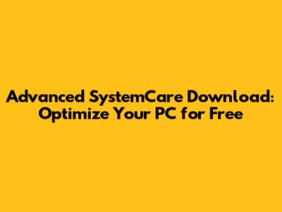 How to Get Your Advanced SystemCare Download Free