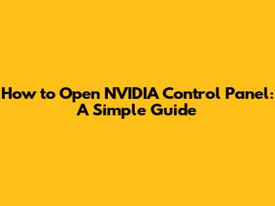How To Open NVIDIA Control Panel: A Simple Guide