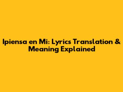 Ipiensa En Mi: Lyrics Translation & Meaning Explained
