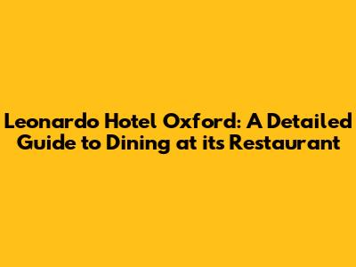 Hey guys! Are you planning a trip to Oxford and considering staying at the Leonardo Hotel? Or maybe you're a local looking for a new dining spot? Well, you've come to the right place! This article dives deep into everything you need to know about the Leonardo Hotel Oxford restaurant. We will cover the ambiance, menu highlights, special offers, and what makes dining here a unique experience. So, buckle up and let's explore the culinary delights awaiting you!