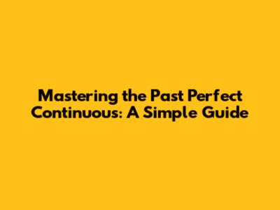 Mastering The Past Perfect Continuous: A Simple Guide