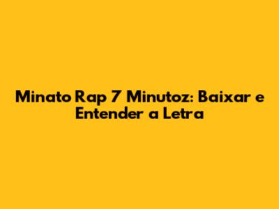 Minato Rap 7 Minutoz: Baixar E Entender A Letra