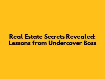 Real Estate Secrets Revealed: Lessons From Undercover Boss