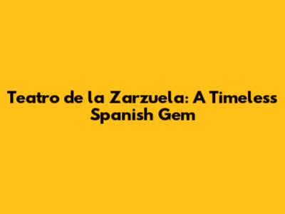 Teatro De La Zarzuela: A Timeless Spanish Gem
